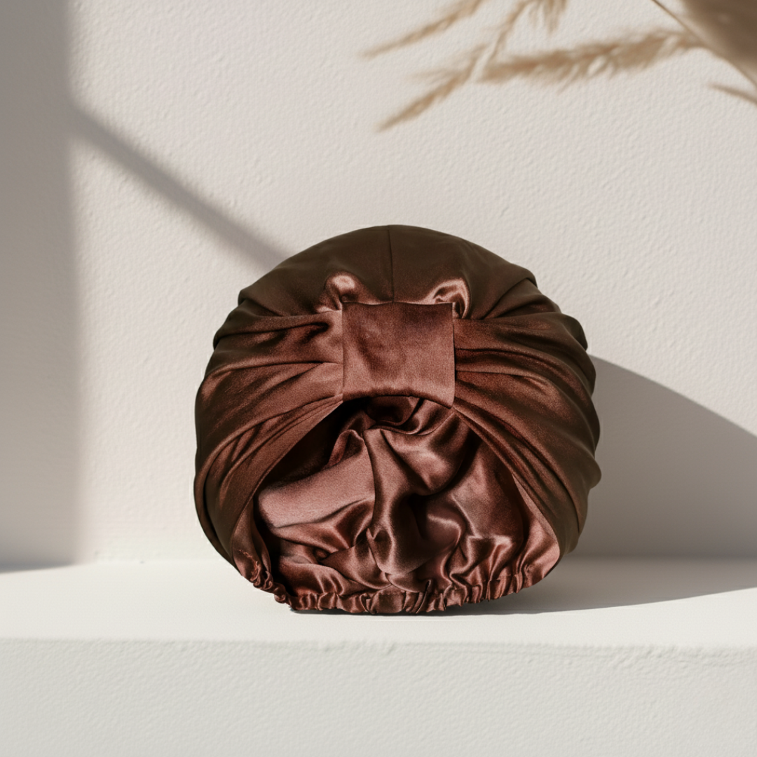 • Die Seidenhaube bewahrt über Nacht den Glanz deines Haares, schützt vor Reibung und reduziert Frizz.